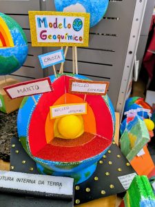 Os alunos do 7º ano aceitaram o desafio das professoras de Ciências Naturais — Ilda Varela, Isabel Fonseca e Verónica Silva — e criaram maquetes sobre a Estrutura Interna da Terra, representando modelos geoquímico e geofísico.