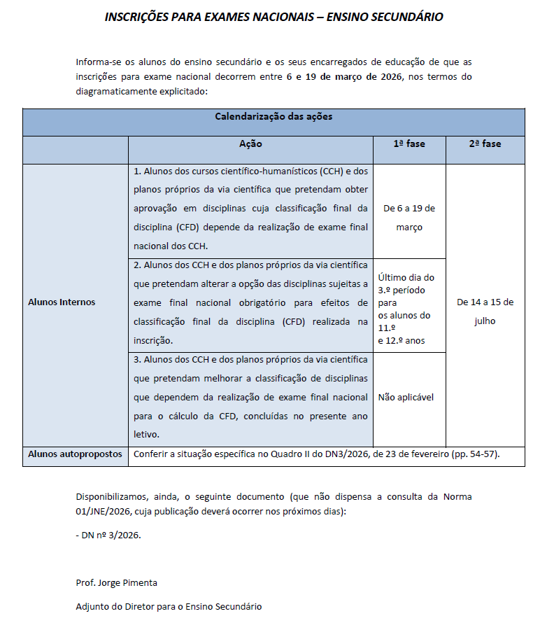 INSCRIÇÕES – ENSINO SECUNDÁRIO