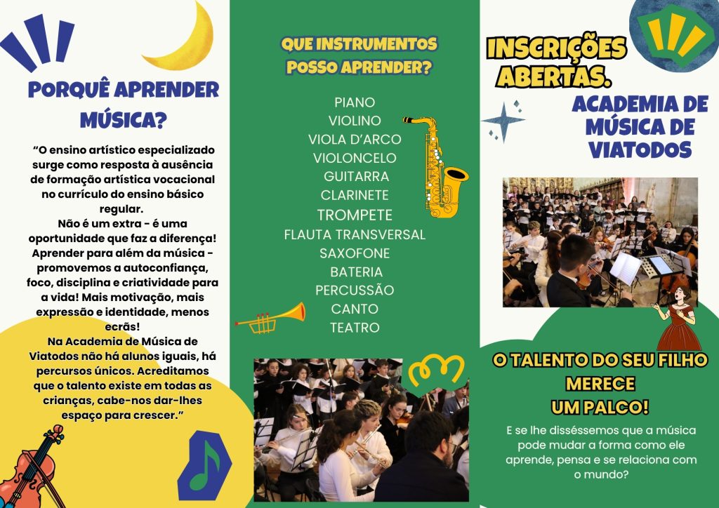 Inscrição para a Prova de Seleção ao Curso Básico de Música em www.amviatodos.pt.